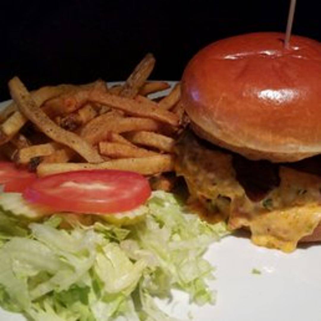 A juicy grilled burger topped with Milner's signature homemade pimento cheese, lettuce, tomato, and your choice of side.