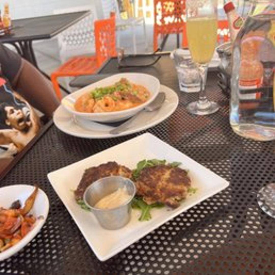 Toasted English muffins topped with succulent crab cakes, poached eggs, and hollandaise sauce. Served with a side of your choice.