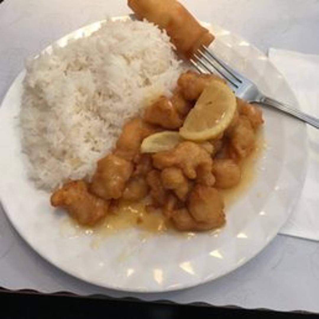 Crispy, golden-fried chicken cutlets coated in a tangy and sweet lemon sauce. Served with steamed white rice.