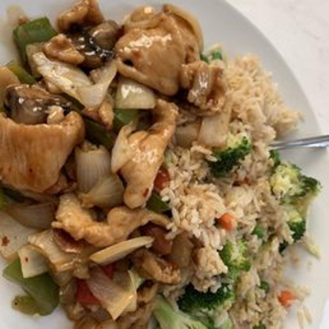 Diced chicken stir-fried with peanuts, dried chili peppers, and vegetables in a savory and slightly spicy Kung Pao sauce. Includes diced bell peppers, celery, and onions. May contain traces of other nuts.