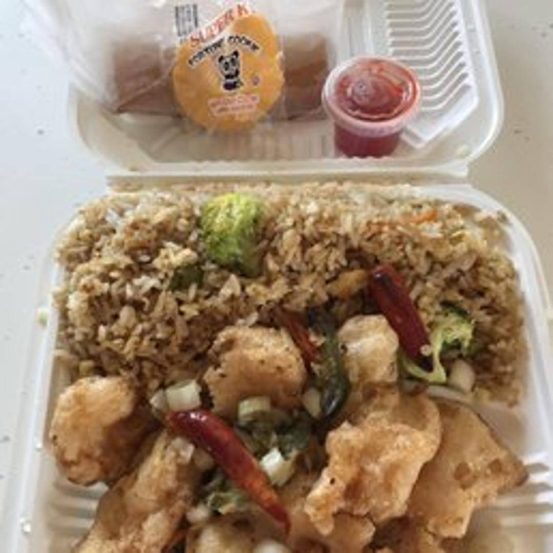 Delicate pieces of fish, lightly battered and fried to a golden crisp, then seasoned with a fragrant mixture of salt, pepper, and aromatic spices. Often garnished with sautéed onions and peppers.