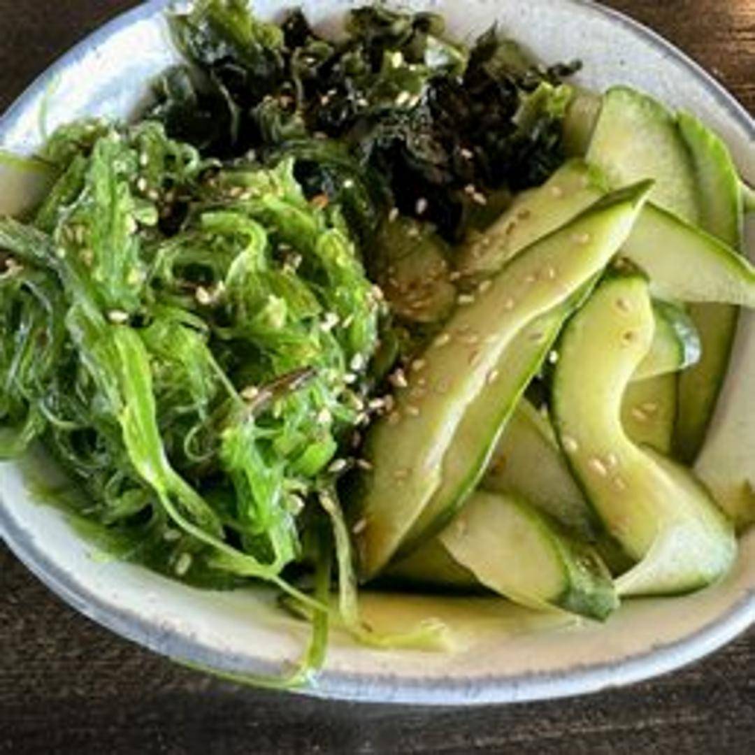 A refreshing salad made with marinated seaweed, often seasoned with sesame oil, vinegar, and soy sauce.