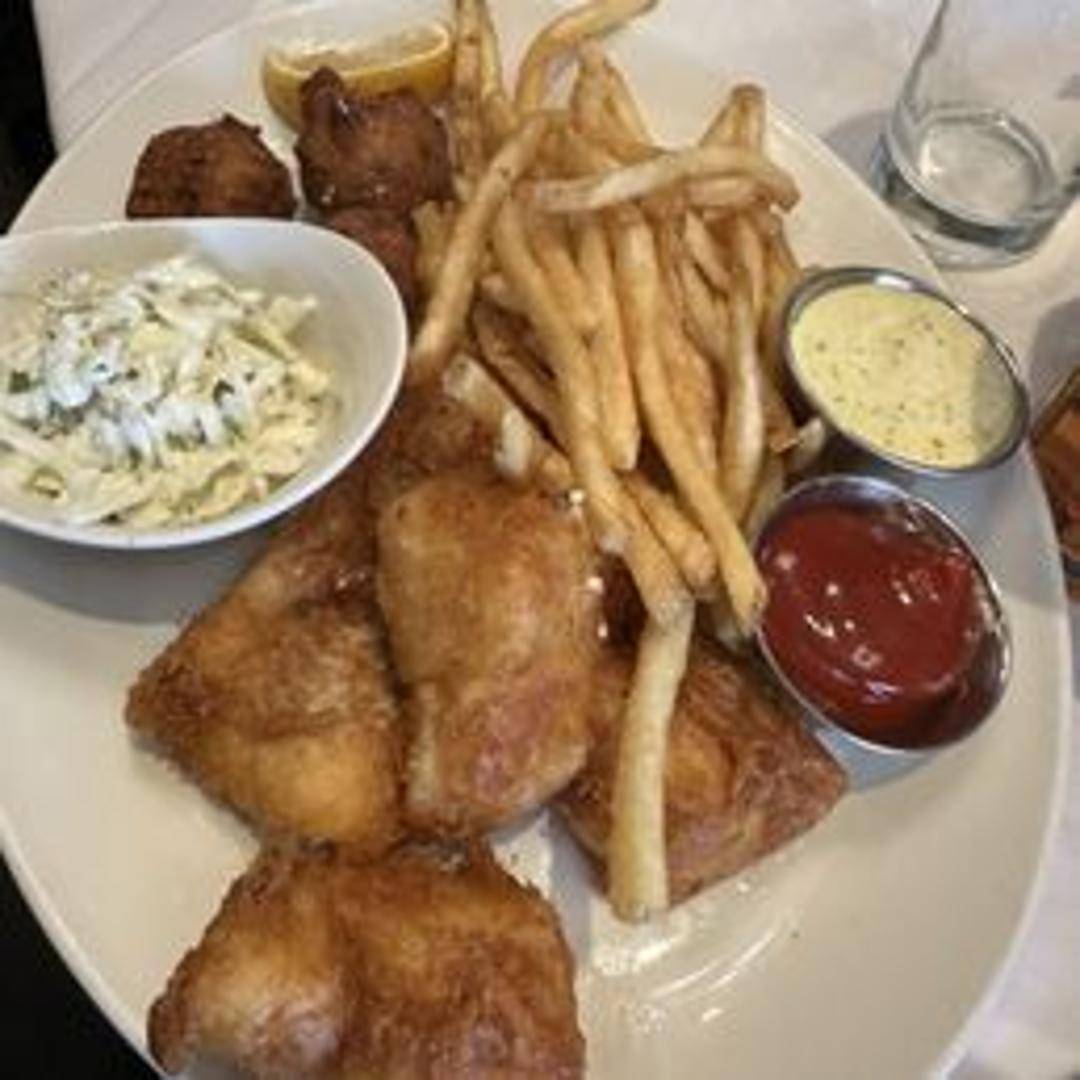 Flaky cod fillets battered in a light and crispy Sam Adams beer batter, fried to golden perfection. Served with thick-cut fries, tartar sauce, and malt vinegar.