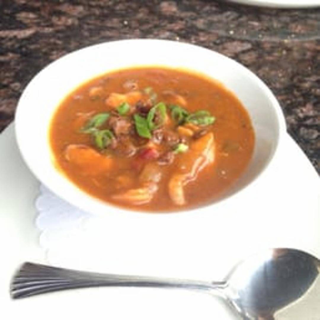 A rich and flavorful stew featuring a medley of Gulf seafood, including shrimp, crab, and oysters, simmered in a traditional dark roux with Andouille sausage, vegetables, and Creole spices. Served over rice.