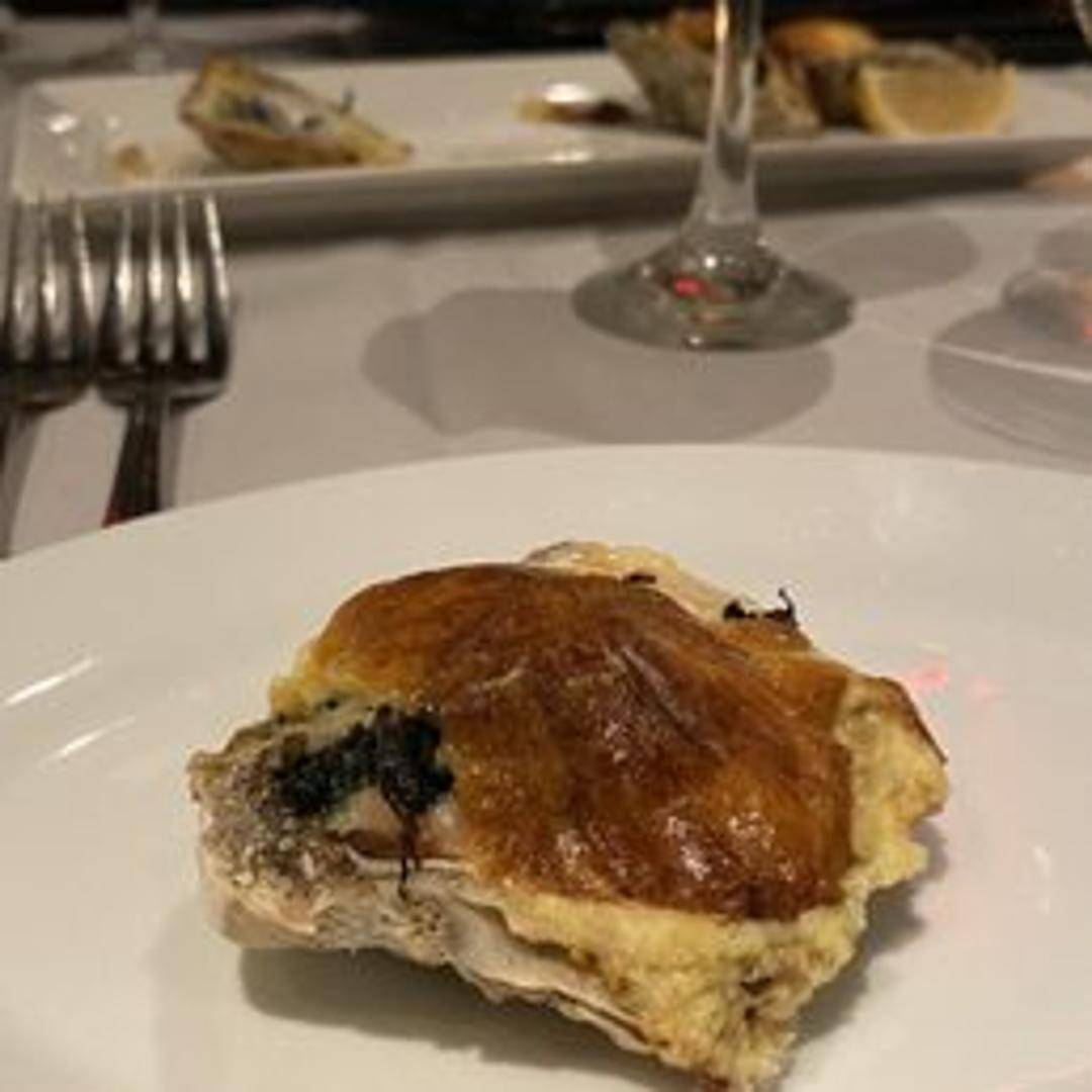 A timeless culinary indulgence featuring fresh, succulent oysters baked to perfection. Each oyster is generously topped with a rich, aromatic mixture of finely chopped spinach, savory herbs, and a hint of anise liqueur, then finished with a buttery breadcrumb crust. This classic appetizer delivers a luxurious and harmonious blend of briny freshness and decadent flavor.