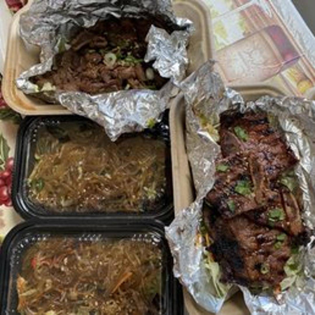 Korean-style short ribs marinated in a sweet and savory sauce. Grilled to perfection and served with a side of rice and banchan (Korean side dishes).