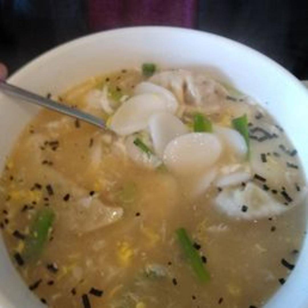 A traditional Korean soup featuring sliced oval rice cakes in a clear, savory broth. Typically includes beef, egg, and vegetables such as scallions. A comforting and flavorful dish, perfect for any occasion.
