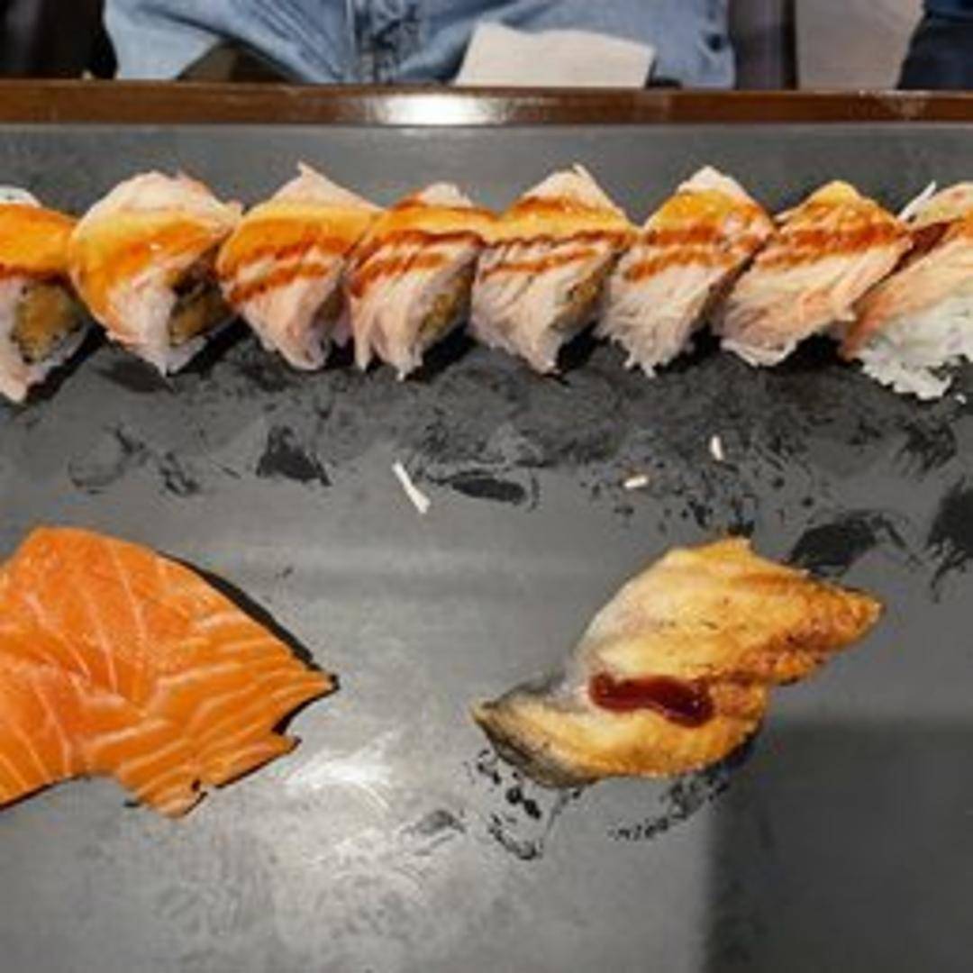 An assortment of fresh, expertly prepared sushi and sashimi. Includes a variety of the chef's selection of nigiri (sliced fish over rice) and sashimi (slices of raw fish), showcasing different types of fish like tuna, salmon, and white fish. Served with ginger, wasabi, and soy sauce.