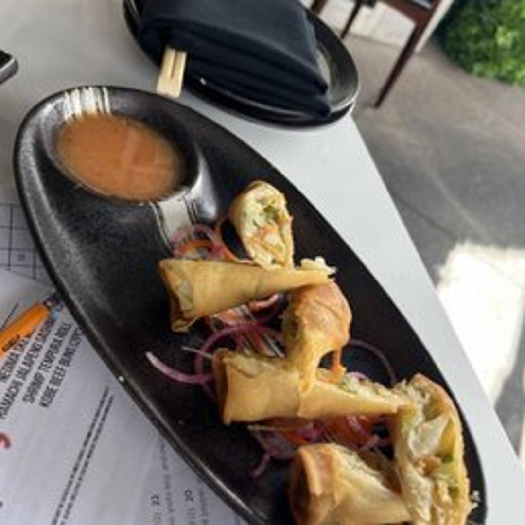Crispy, deep-fried spring rolls filled with a mixture of shredded vegetables such as cabbage, carrots, and mushrooms. Served with a sweet chili dipping sauce.