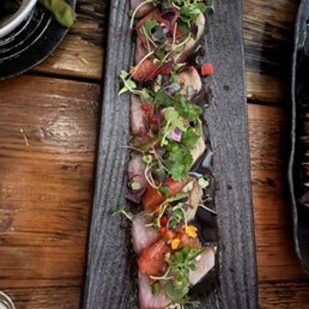 Yellowtail tuna, known for its delicate flavor and smooth texture. Served as nigiri or sashimi.