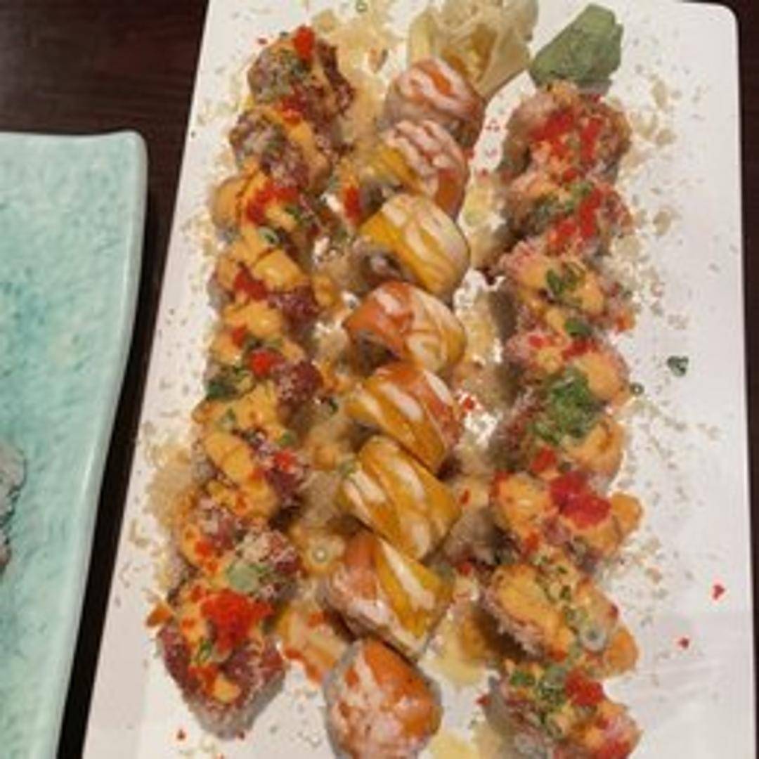 Celebrate the season with the vibrant and festive Christmas Roll. This artfully crafted roll often captures the spirit of the holidays with a colorful array of ingredients. It typically combines fresh tuna and salmon, paired with creamy avocado and crisp cucumber, and is frequently topped with bright red tobiko or masago and a touch of green seaweed salad, creating a visually stunning and deliciously balanced sushi experience reminiscent of festive colors.