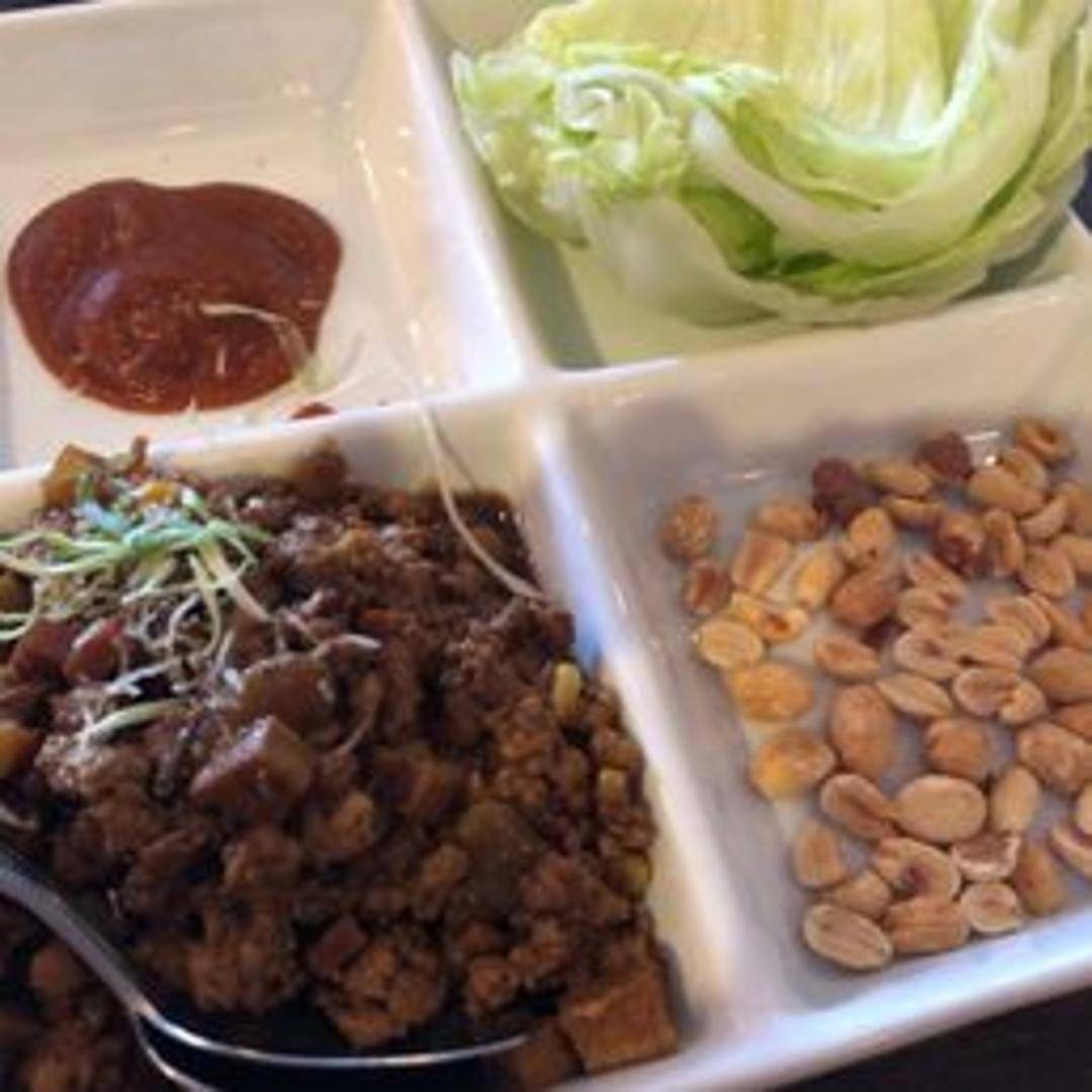 Savory filling of seasoned ground meat (choice of chicken, pork, or tofu) with water chestnuts, mushrooms, and green onions. Served with crisp lettuce cups for wrapping and a tangy dipping sauce.