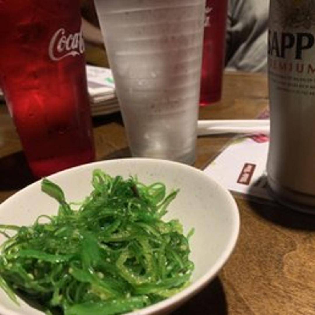 A refreshing and vibrant traditional Japanese salad made from tender wakame seaweed, marinated in a light, tangy dressing infused with sesame oil, rice vinegar, and a hint of soy sauce. Garnished with toasted sesame seeds, it offers a crisp texture and delicate, savory-sweet flavor.