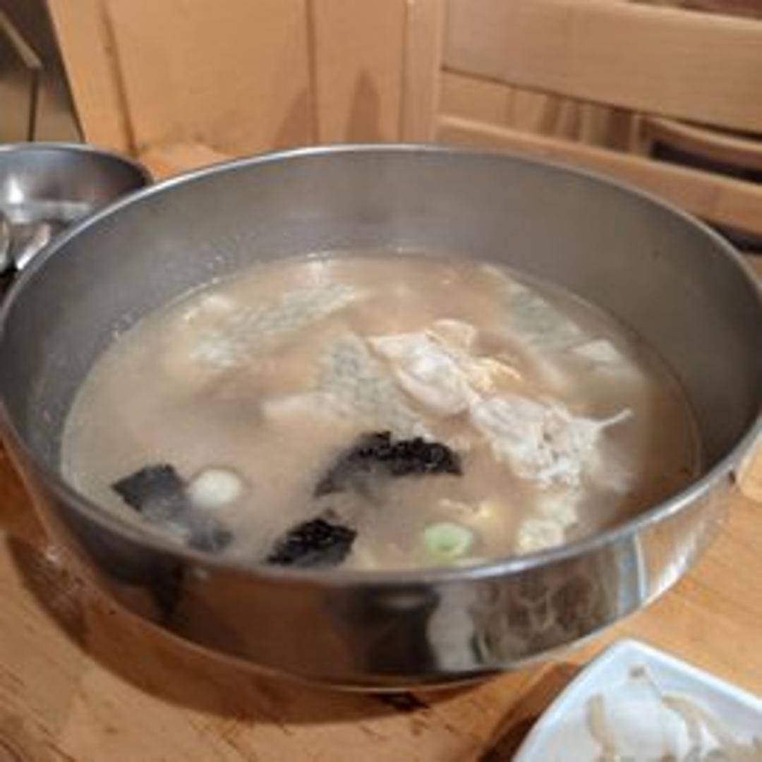 A comforting Korean soup featuring chewy rice cakes in a savory broth. Typically includes sliced beef, egg garnish, and seaweed. Warm and flavorful, this soup is a traditional favorite.