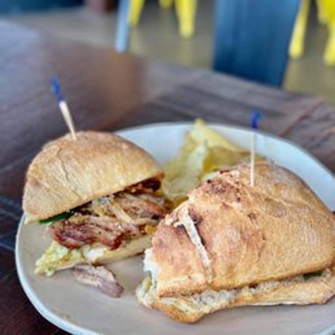 Marinated chicken, pickled vegetables, cilantro, jalapeños, sriracha aioli, baguette.