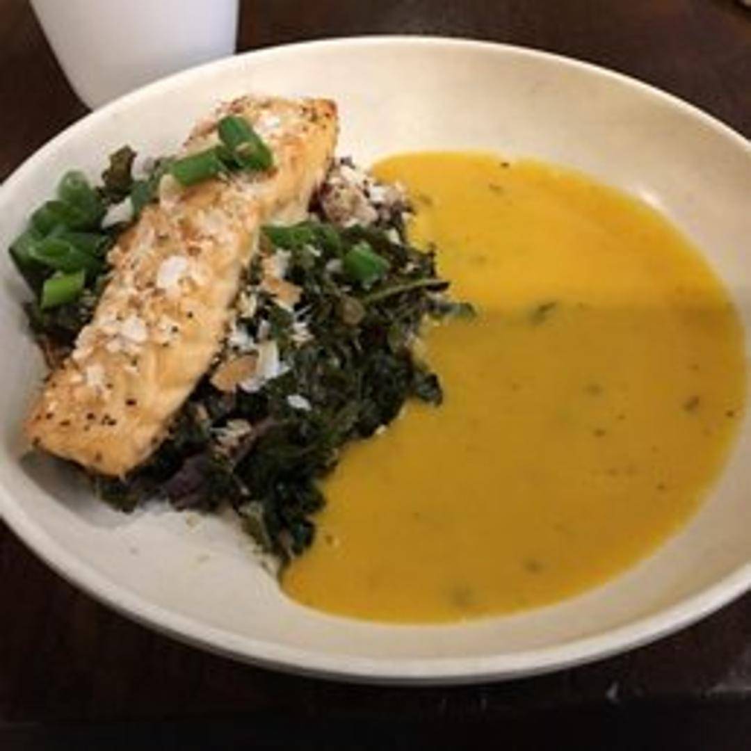 Sustainably raised salmon glazed with our house-made curry sauce. Served with choice of side.
