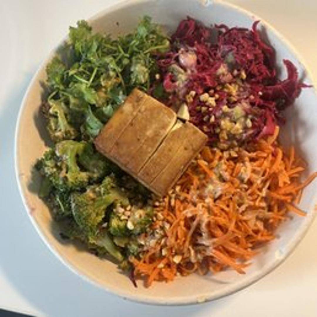 A balanced bowl featuring a medley of grains, roasted vegetables, flavorful sauces, and optional protein, designed to provide a nourishing and satisfying meal.