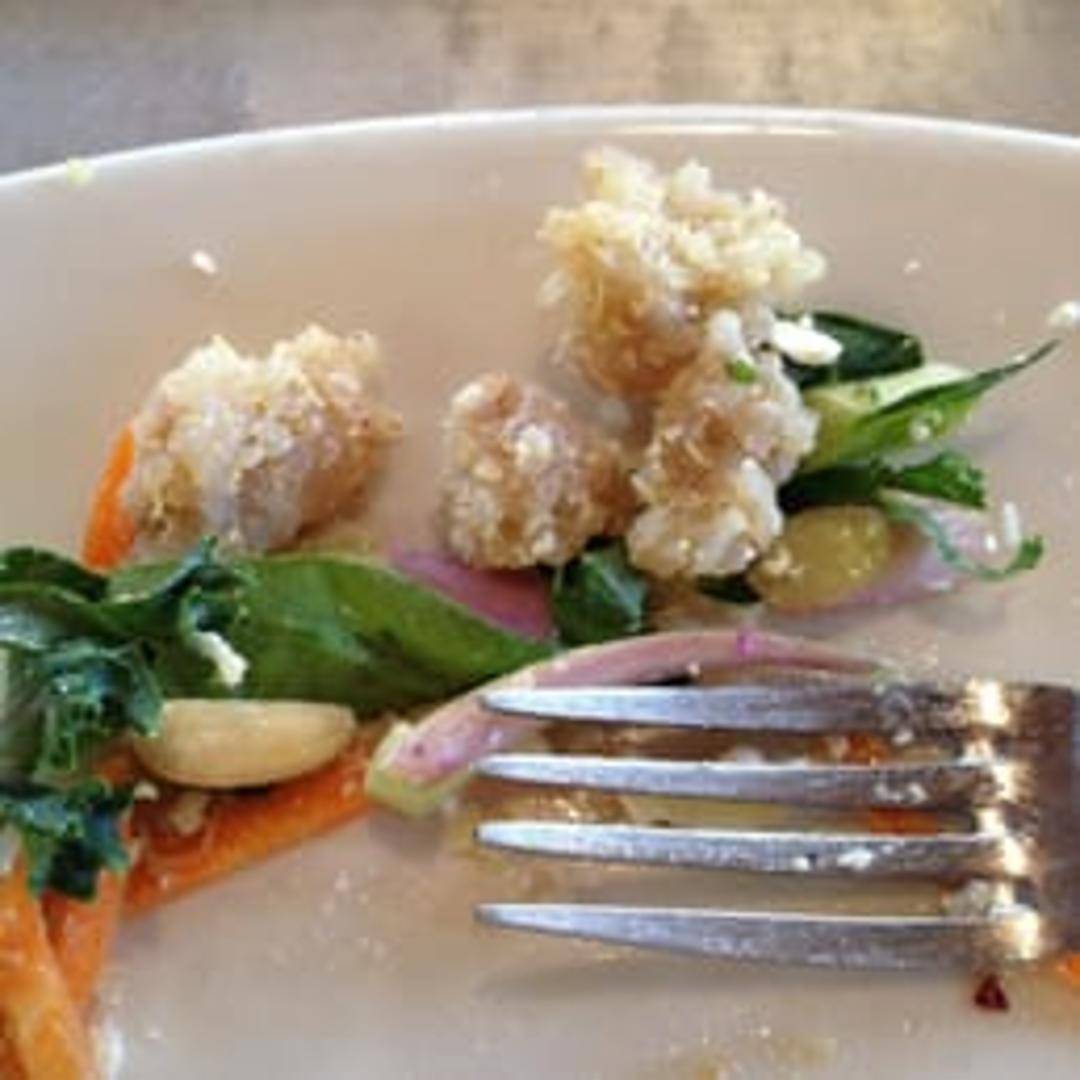 Organic mixed greens, quinoa, avocado, blueberries, strawberries, goat cheese, toasted almonds, and honey-lemon vinaigrette.