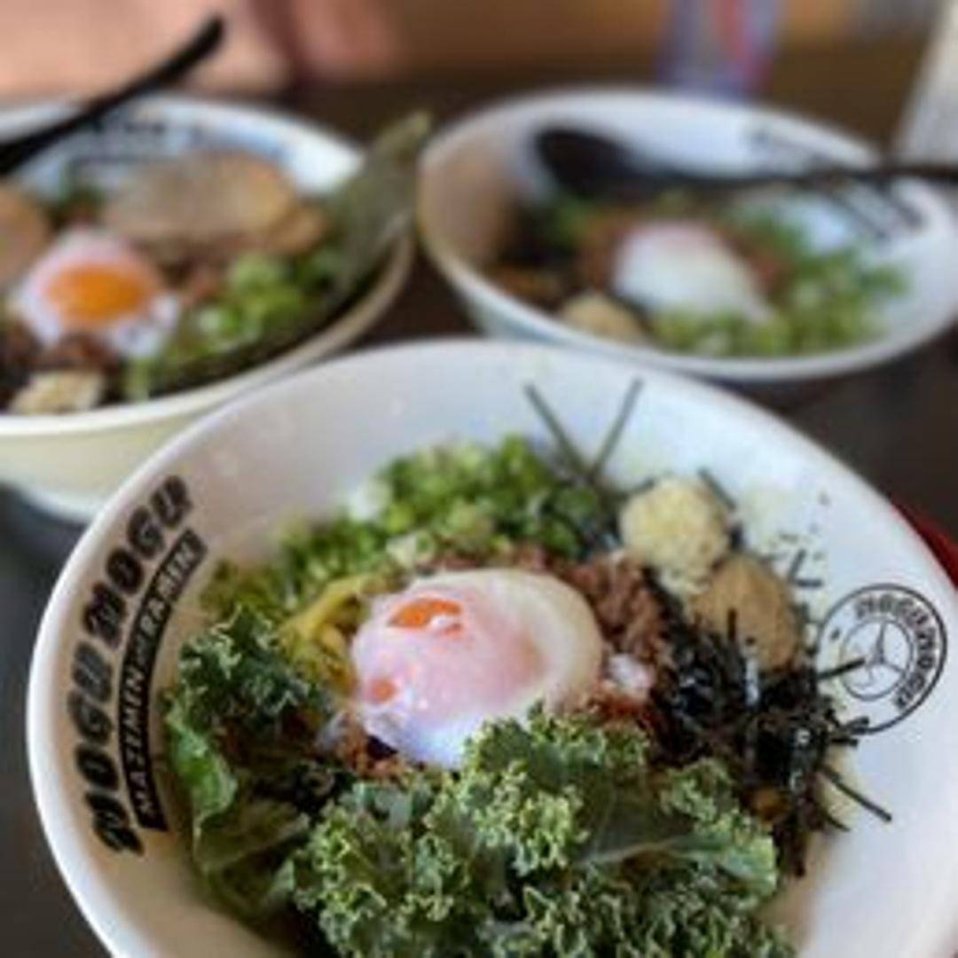 Thick, chewy noodles tossed in a rich and savory Japanese curry sauce. Topped with seasoned ground pork, green onions, and a soft boiled egg. A flavorful and comforting dish with a hint of spice.