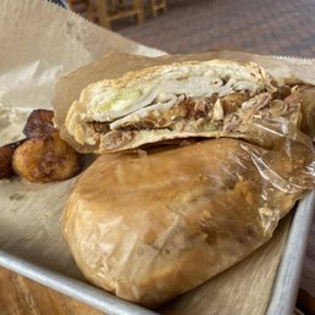 A signature sandwich featuring layers of savory fillings, unique sauces, and fresh bread. Expect a substantial and flavorful experience, showcasing a blend of Latin and classic American flavors.