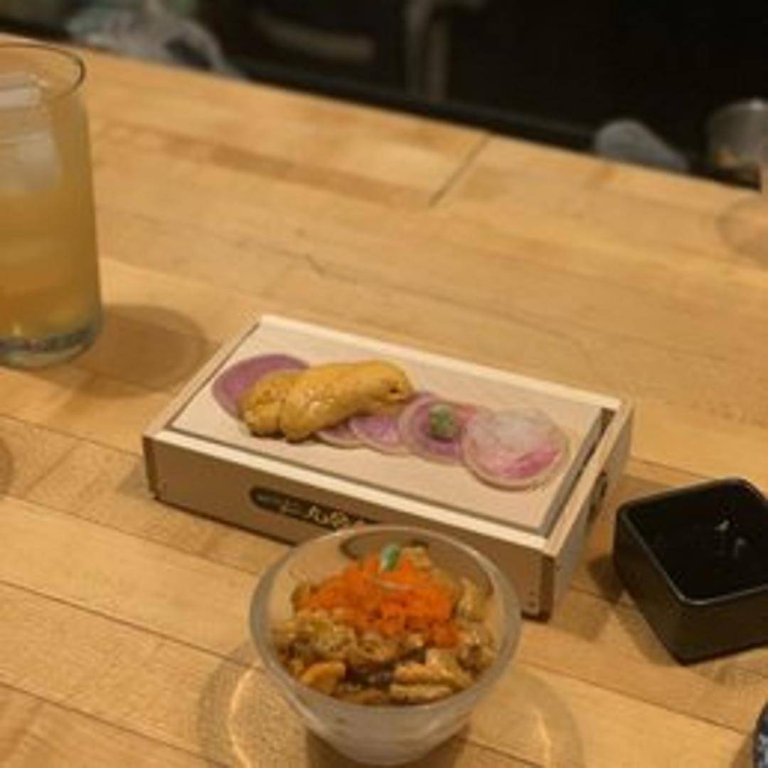 A single serving of fresh, premium Uni (sea urchin), typically served chilled. This features a creamy, melt-in-your-mouth texture and a distinctive, briny flavor.