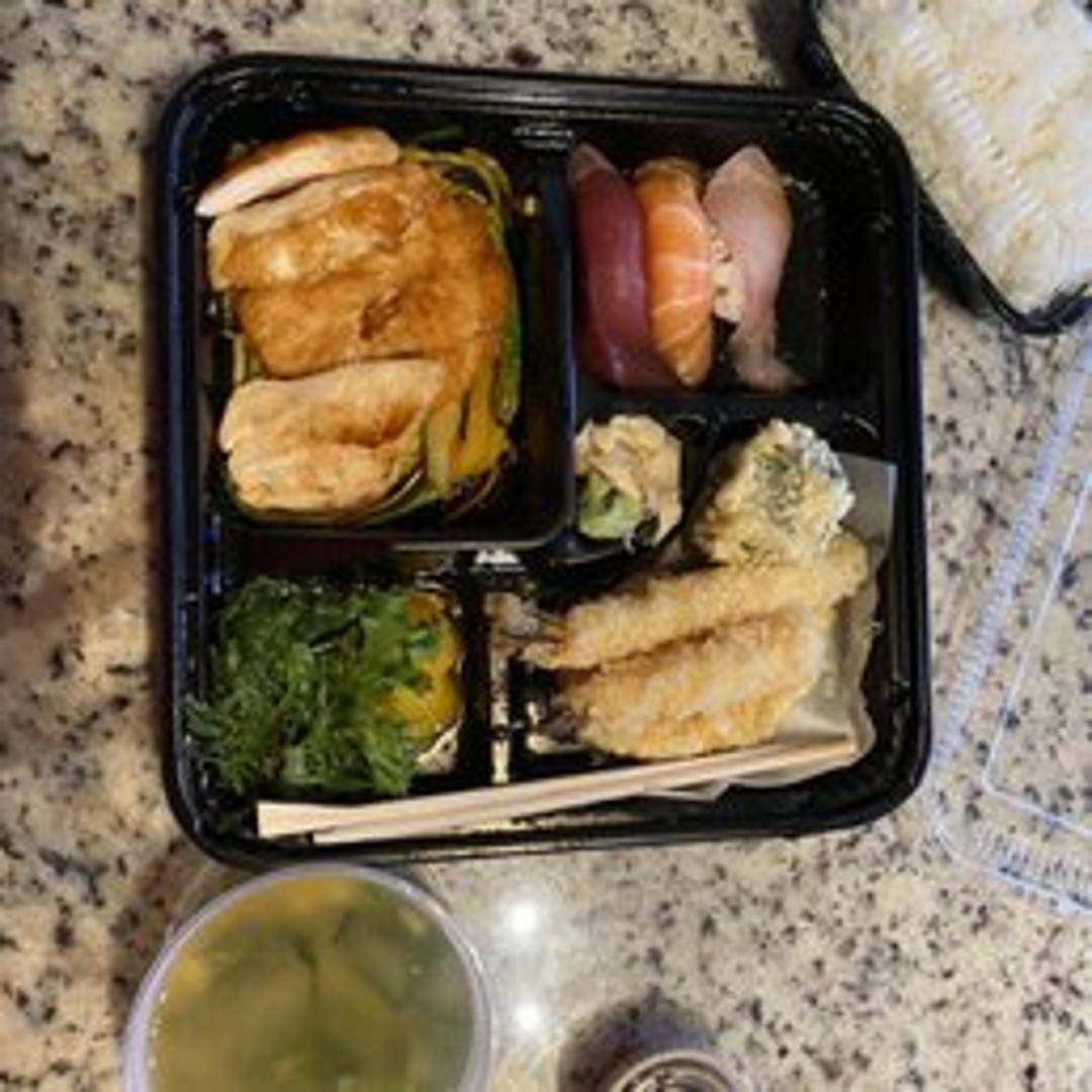 Experience a complete and satisfying meal with Momiji's classic Bento Box. This traditional Japanese lunchbox features a meticulously arranged assortment of culinary delights, typically including perfectly steamed rice, a choice of flavorful protein such as tender Chicken Teriyaki or crispy Shrimp Tempura, fresh garden salad, and savory gyoza. It's the perfect choice for a balanced and delicious meal, embodying the art of Japanese dining.