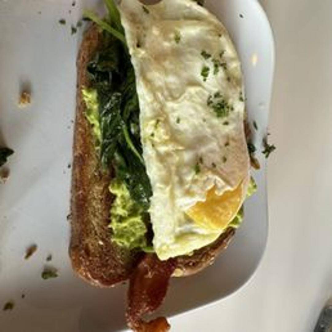 Fresh avocado slices layered with crisp lettuce, juicy tomatoes, and creamy aioli on toasted multigrain bread. A light and refreshing vegetarian option.