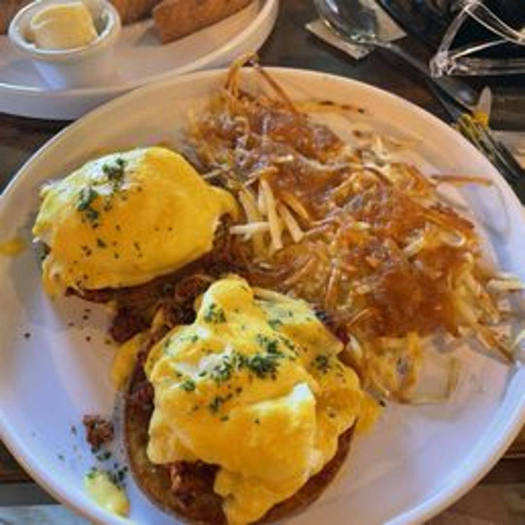 A savory twist on the classic Eggs Benedict. Features toasted English muffins topped with sliced chorizo, poached eggs, and a generous serving of creamy hollandaise sauce. A spicy and satisfying breakfast or brunch option.