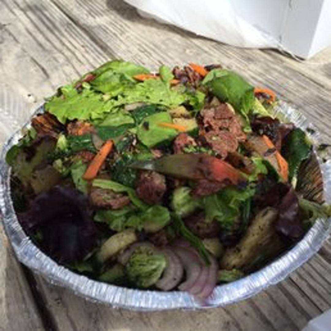 Grilled steak tips, cooked to your liking, served atop a bed of fresh mixed greens. Includes sliced tomatoes, cucumbers, red onion, and your choice of dressing. A flavorful and lighter option, perfect for lunch or a light dinner.