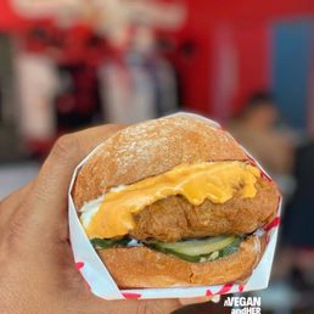 Crispy fried chicken, lettuce, tomato, pickles, and Monty's sauce on a toasted potato bun.