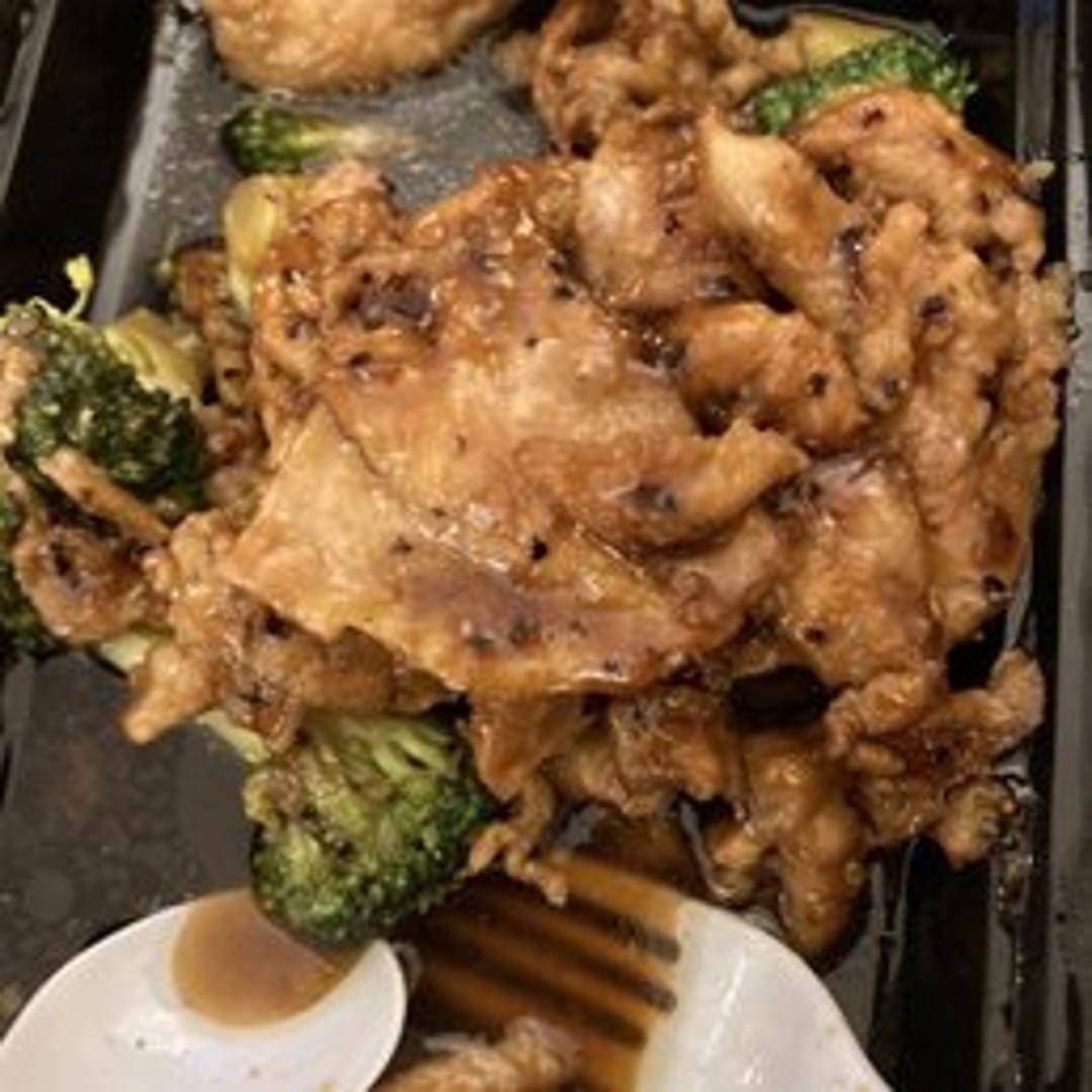 Tender pieces of chicken stir-fried with bell peppers and onions in a rich, savory black pepper sauce. A classic Chinese dish with a bold and aromatic flavor.