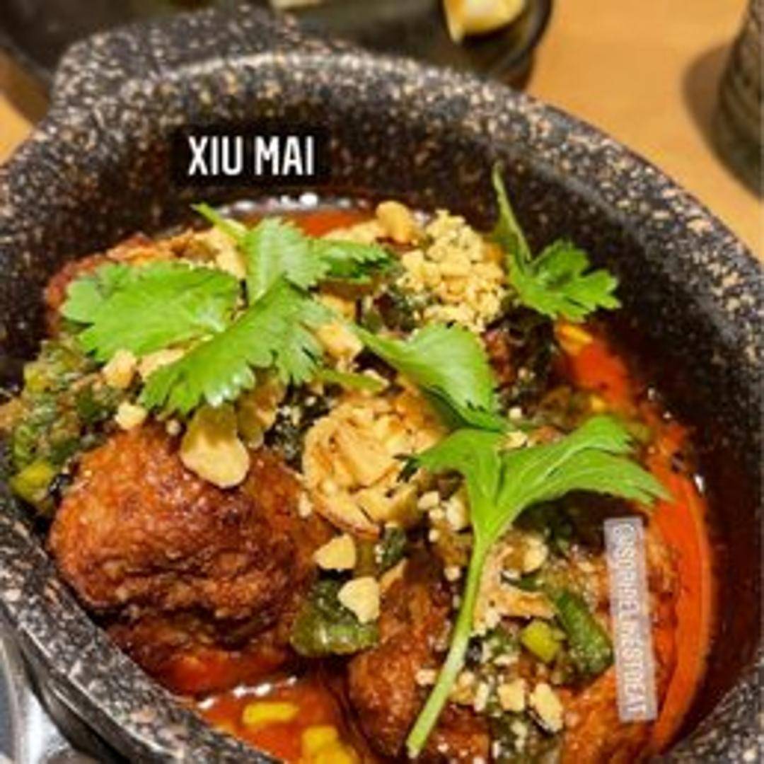 Traditional Xiu Mai dumplings, meticulously handcrafted with a savory filling, typically featuring a blend of seasoned pork. Steamed to tender perfection, these dumplings are a classic delight, served with a complementary dipping sauce that enhances their rich flavors.