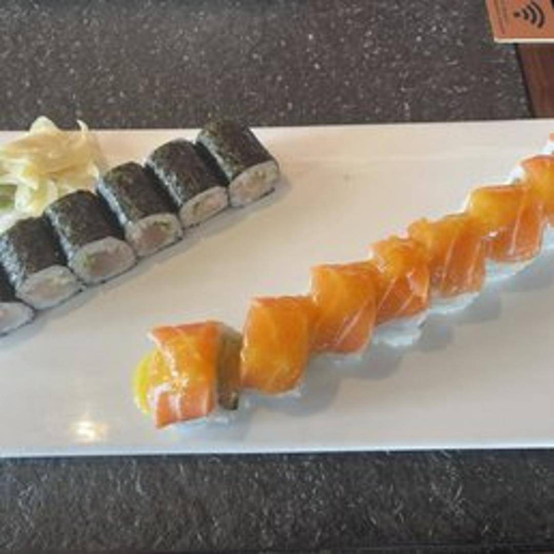 A special sushi roll with unique fillings and toppings, often featuring a golden or yellow colored element. (Specific ingredients vary, inquire with the restaurant.)