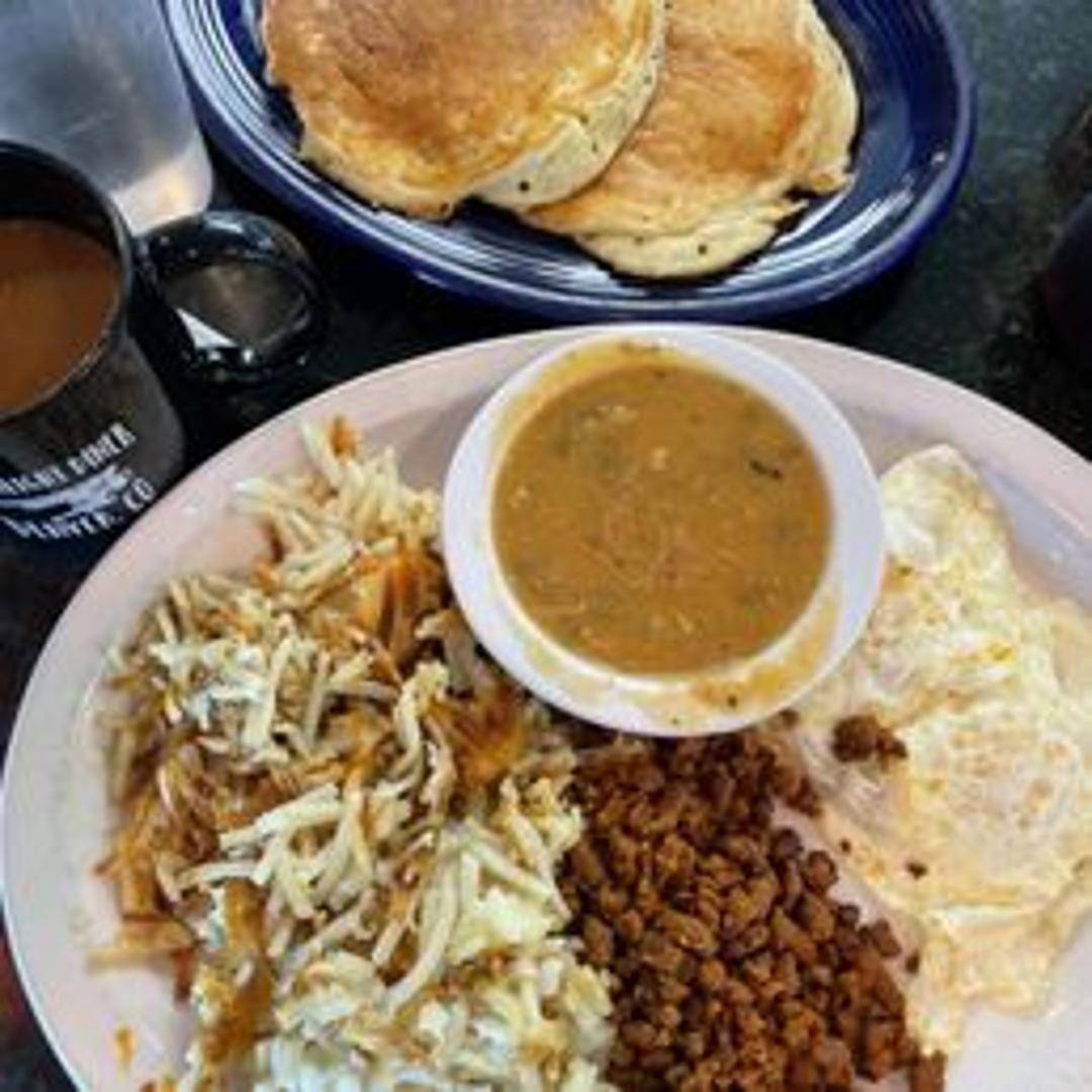 A flavorful and slightly spicy soup made with roasted green chiles, tomatoes, and a blend of spices. Topped with cheese.