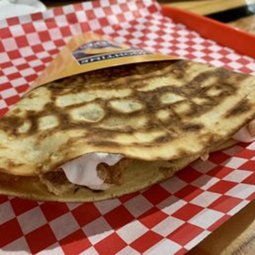 A savory crepe filled with scrambled eggs, bacon, cheddar cheese, and a touch of maple syrup.