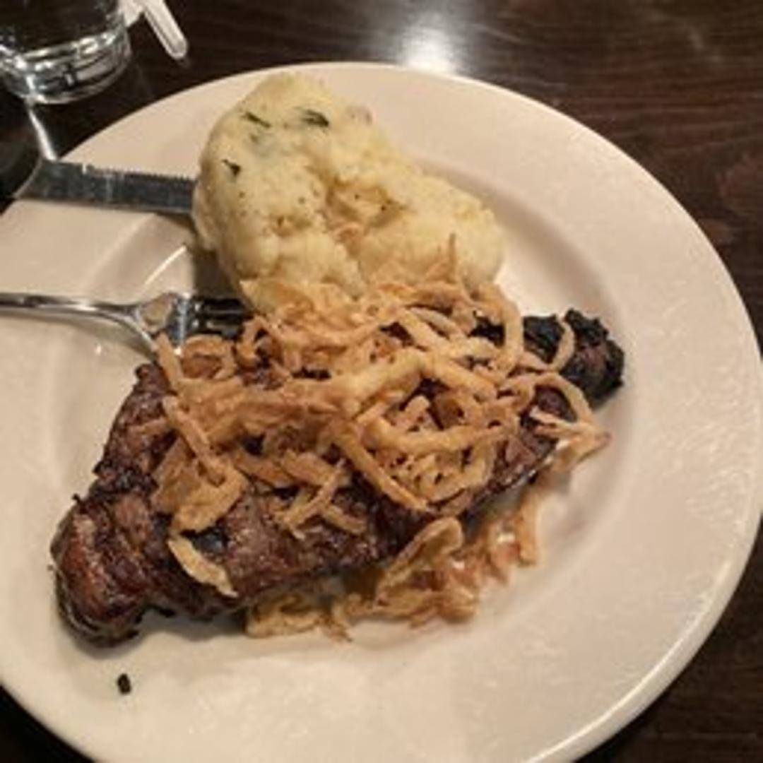 A classic, grilled New York Strip steak, known for its rich flavor and tender texture. Served with your choice of two sides.