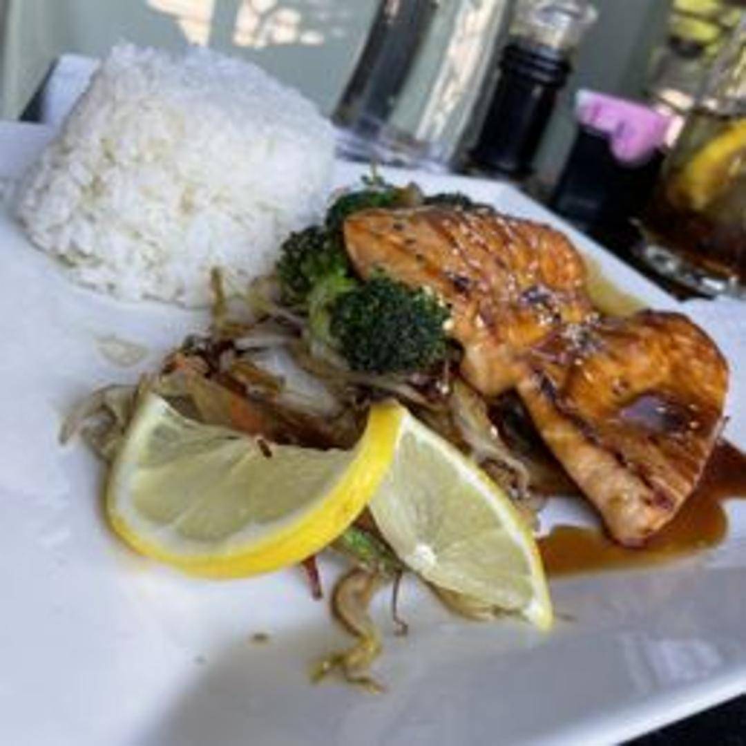 Indulge in a perfectly cooked fillet of Atlantic salmon, pan-seared or grilled to flaky perfection, and generously glazed with our signature sweet and savory house-made teriyaki sauce. This classic dish offers a delightful balance of rich fish flavor and umami sweetness, typically served with a side of steamed rice and a fresh vegetable garnish, creating a satisfying and wholesome meal.