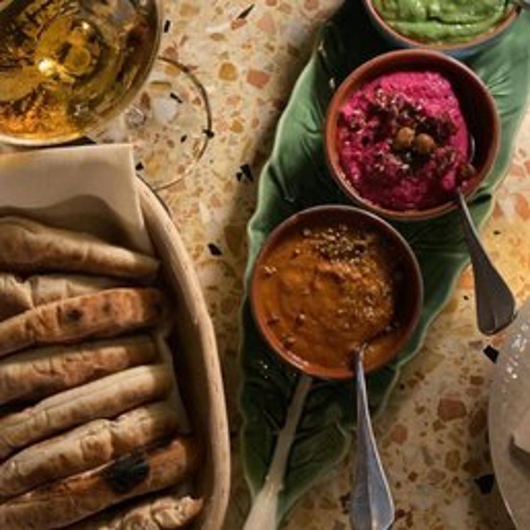 Earthy roasted beets blended with creamy hummus, creating a vibrant and flavorful dip. Served with warm pita bread and fresh vegetables for dipping.