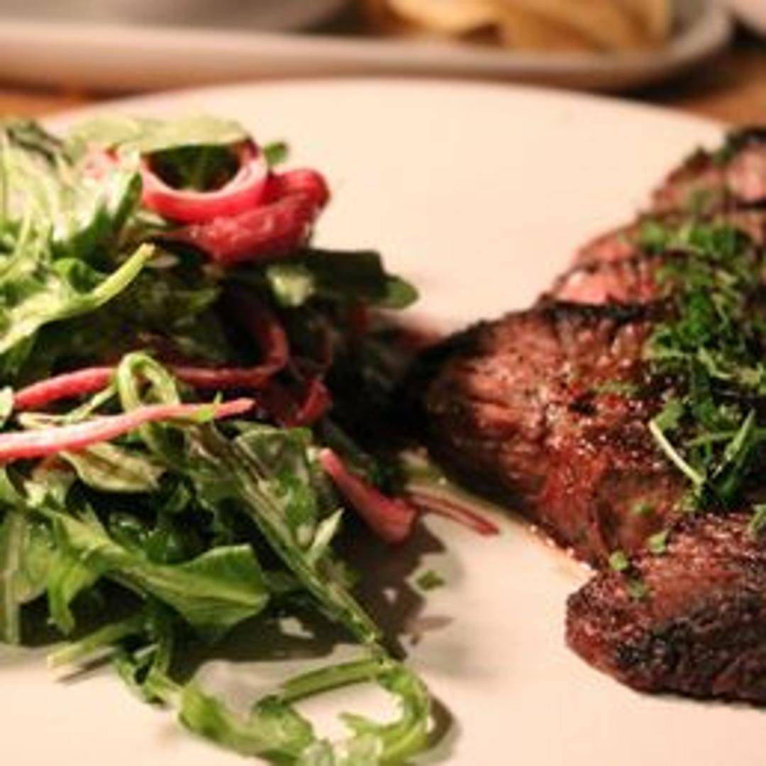 A unique and flavorful combination plate from Mothership. This features a tender steak prepared in the style of classic steak frites, served alongside crispy, house-made taro chips for a satisfying crunch and slightly sweet counterpoint. Completing the dish is seasoned chicken, offering a variety of textures and tastes in one satisfying meal.