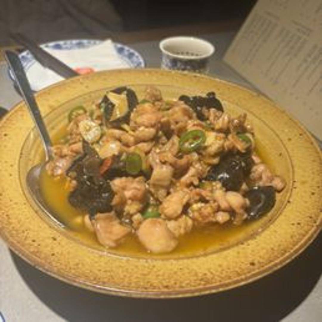 Diced rabbit meat stir-fried with a vibrant assortment of bell peppers and chili peppers. This dish combines the delicate flavor of rabbit with the colorful and slightly spicy profile of mixed peppers, creating a unique and flavorful experience.