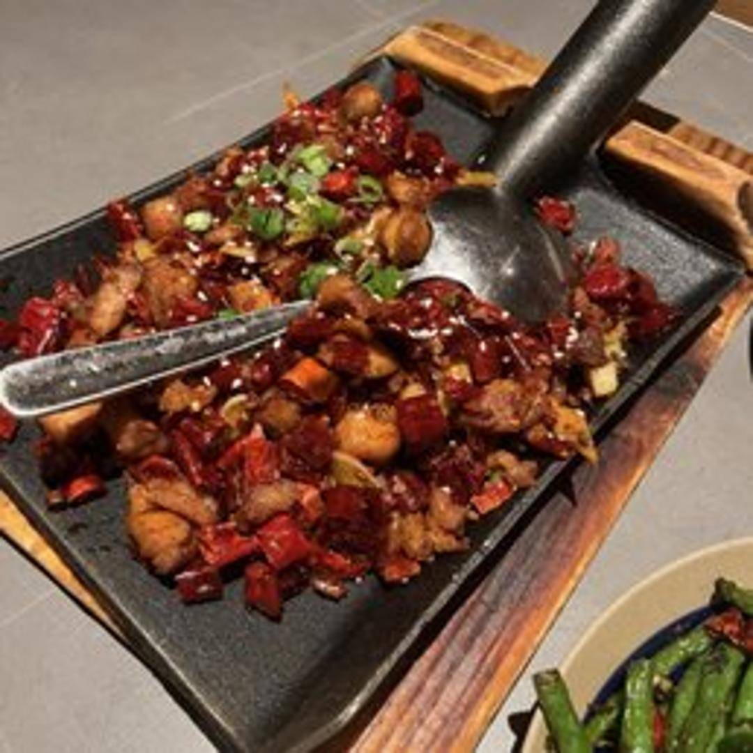Crispy, bite-sized pieces of chicken stir-fried with a generous amount of dried chili peppers and Szechuan peppercorns. A fiery and addictive dish with a numbing sensation from the peppercorns, balanced by the savory flavor of the chicken.