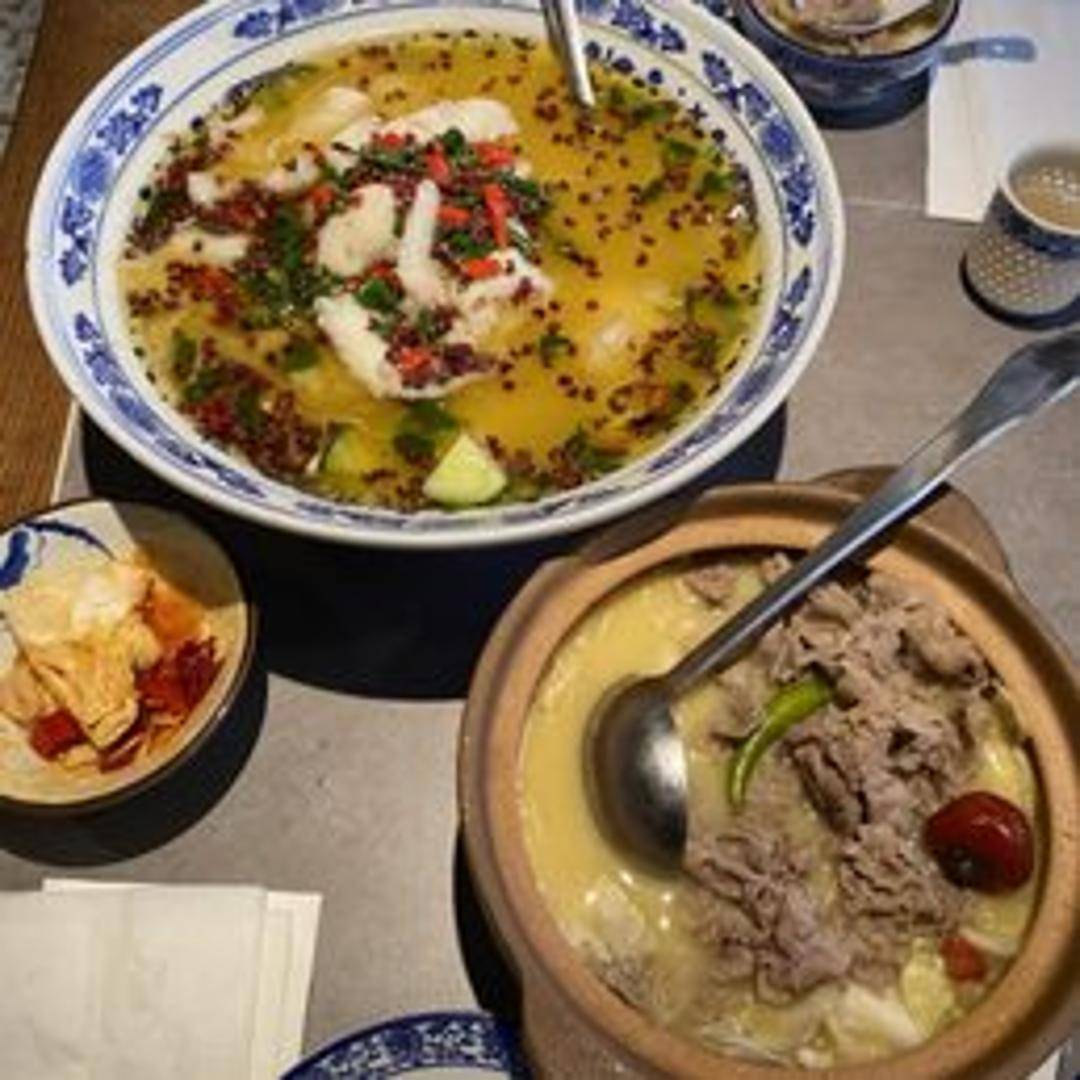 A tangy and savory soup featuring tender slices of beef simmered in a flavorful broth with pickled vegetables, mushrooms, and a hint of spice. A classic dish with a satisfying balance of sour and savory flavors, perfect for a comforting meal.