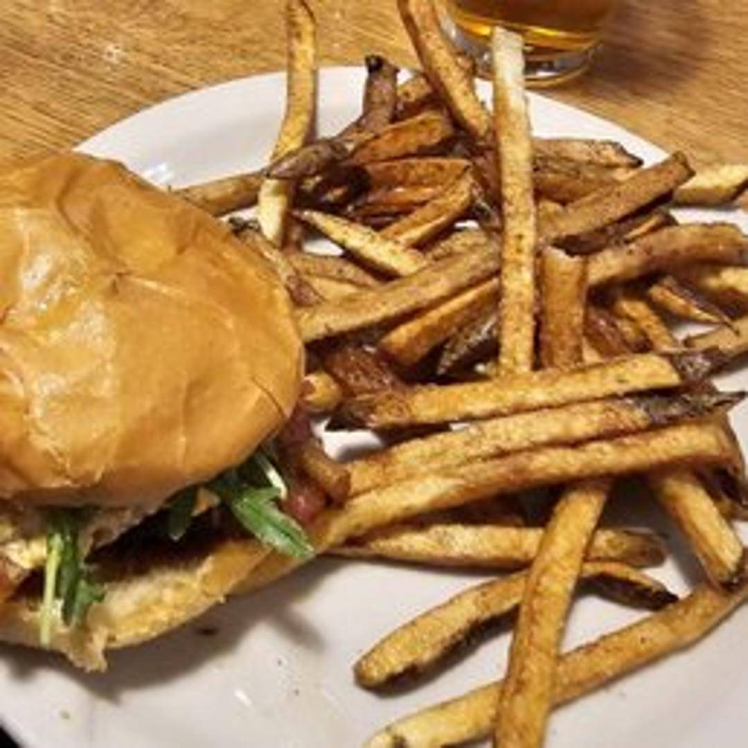 Lean bison patty, choice of cheese, lettuce, tomato, onion and pickle on a toasted bun. Served with your choice of side.