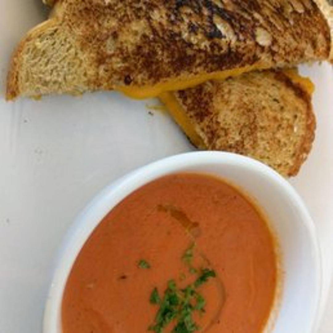 A creamy and flavorful tomato soup, made with roasted tomatoes, herbs, and a touch of cream.