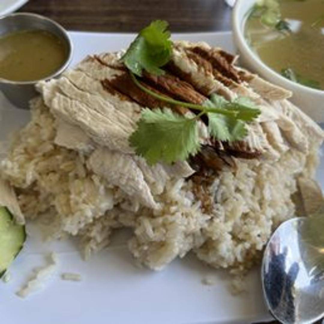 Poached chicken, meticulously prepared for optimal tenderness and flavor, served atop fragrant rice cooked in chicken broth. Accompanied by a trio of dipping sauces – ginger-scallion, chili, and dark soy – each adding a unique dimension to the dish.
