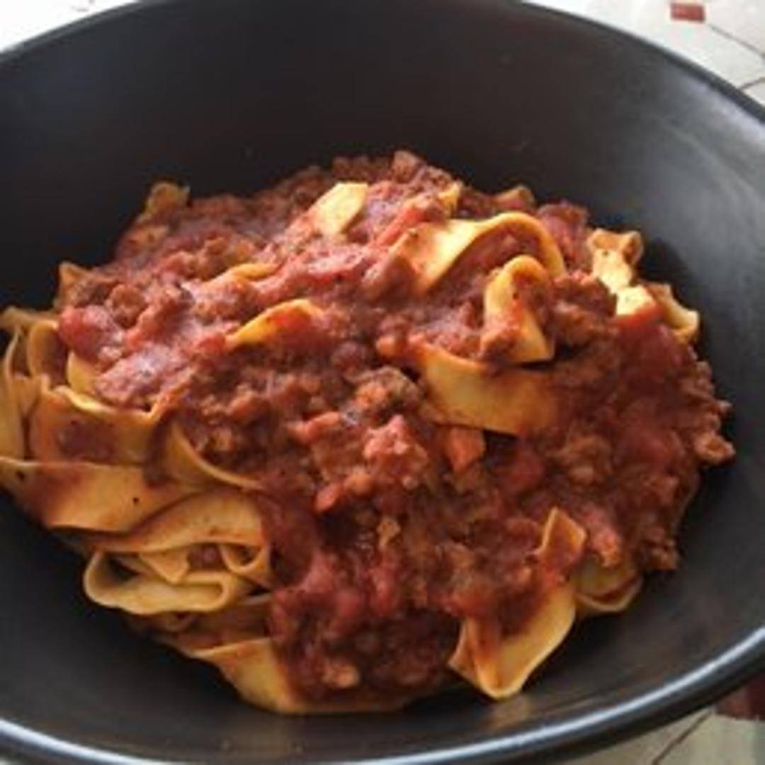 Broad, flat pappardelle noodles expertly coated in Mulino's signature Bolognese sauce. This deeply flavorful, slow-simmered ragù features a rich blend of finely ground meats, aromatic vegetables, and San Marzano tomatoes, cooked for hours to achieve a robust and comforting Italian classic.