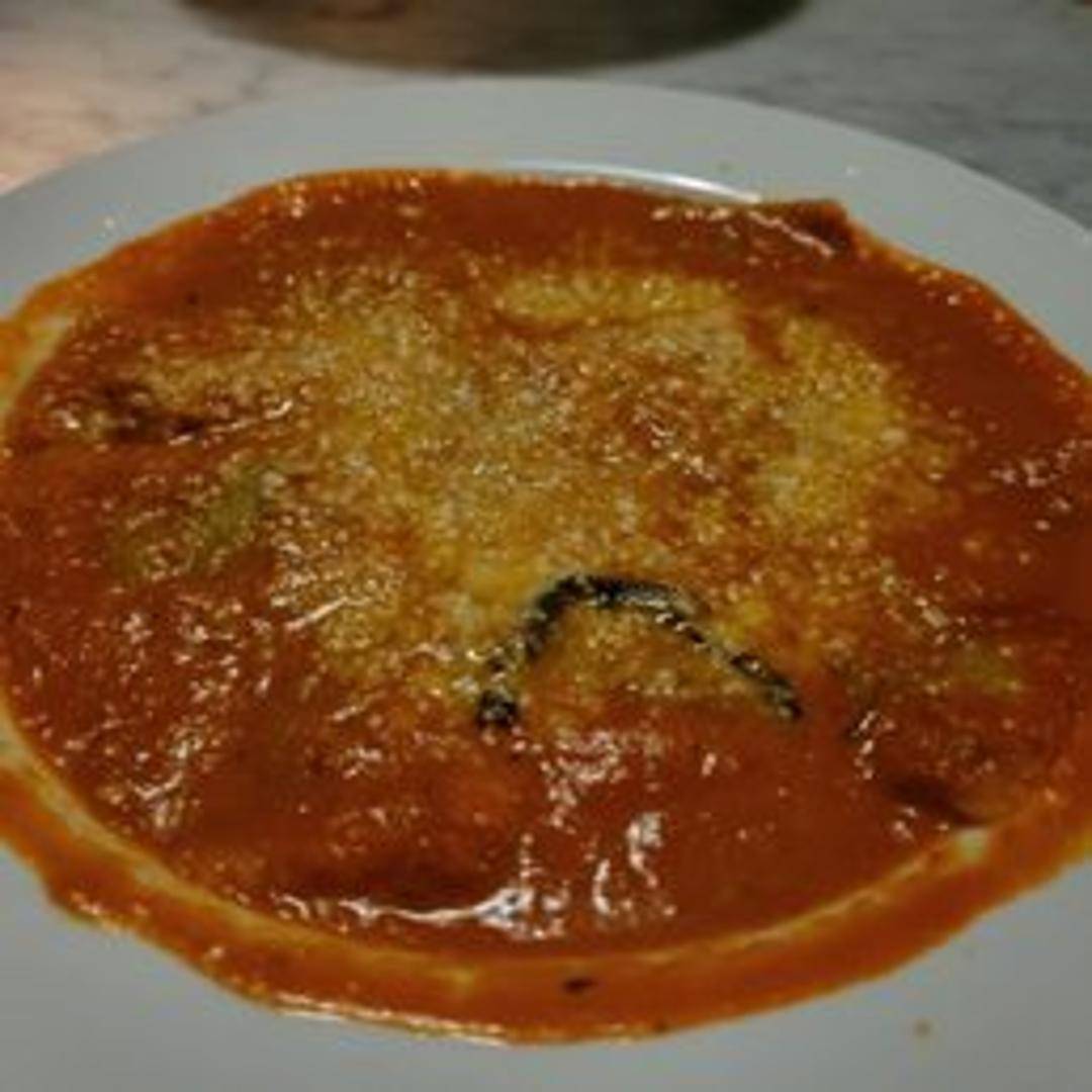 Artisan-made ravioli brimming with a savory and wholesome filling of tender, roasted eggplant, subtly seasoned with garlic and basil, and often combined with a touch of creamy ricotta. This vegetarian delight offers a rich and satisfying taste of Italian tradition.