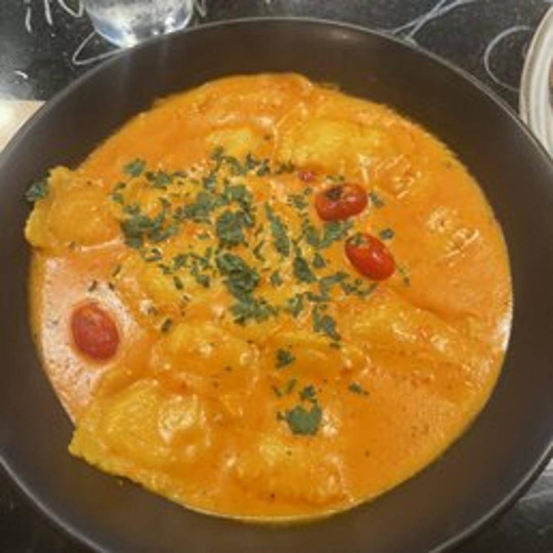 Delicate, handcrafted pasta parcels generously filled with a harmonious blend of tender, flaked salmon, creamy ricotta cheese, and a hint of fresh herbs. These exquisite ravioli are typically served in a complementary light sauce that accentuates the delicate flavors of the seafood.