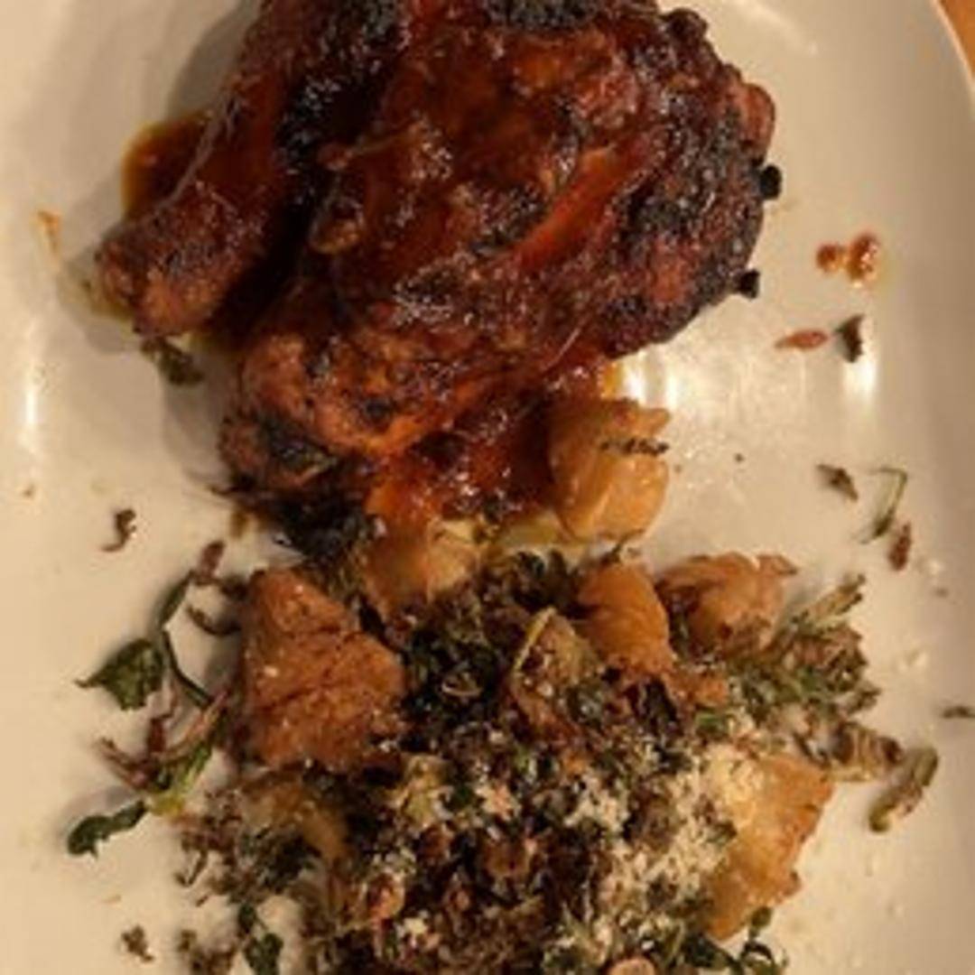 Half of a chicken, slow-smoked and grilled for a tender, juicy, and smoky flavor. Served with your choice of sides.