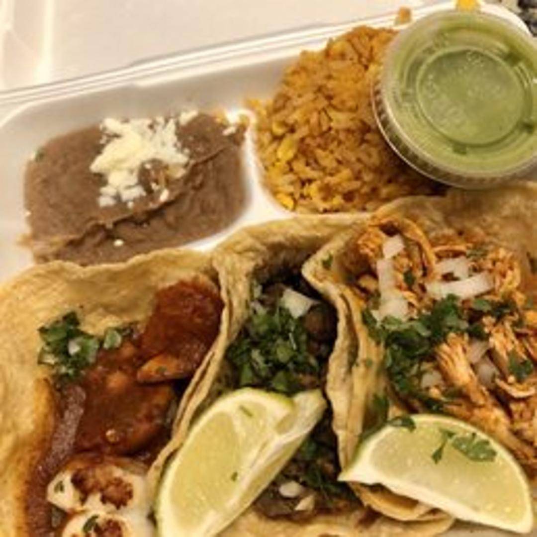 Enjoy a delicious Taco Dinner! Includes your choice of filling (options may vary, please specify when ordering) served in warm tortillas. Comes with a side of rice and beans, and your choice of toppings like shredded lettuce, diced tomatoes, cheese, onions, and salsa.